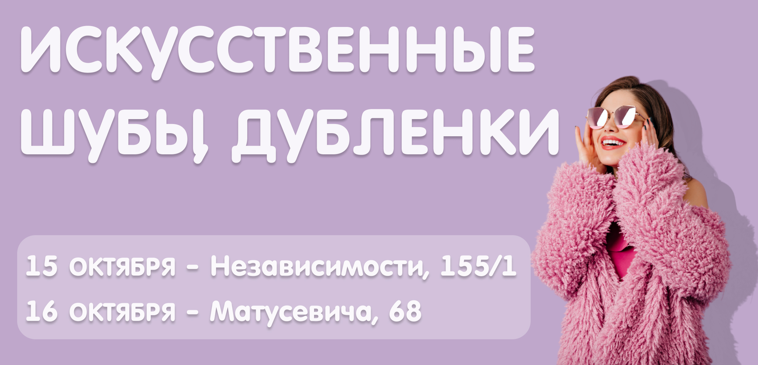 Уважаемые покупатели! Поступление ИСКУССТВЕННЫХ ШУБ,ДУБЛЕНОК 15 октября — Независимости, 155/1 16 октября — Матусевича, 68 Приглашаем за покупками! Навигация по записямПредыдущаяПредыдущая запись:Внимание! В сети наших магазинов действуют карты рассрочек «Халва» ЗАО “МТБанк”. Теперь вы можете делать покупки с рассрочкой платежа на 2 месяца. Оформить карту рассрочки «Халва» вы можете перейдя по ссылке: https://www.halva.by/СледующаяСледующая запись:Поступление БАЕК, ХУДИ, СВИТШОТОВ и СПОРТИВНЫЙ ШТАНОВ13 октября- Платонова, 3414 октября- Г. Правда, 17