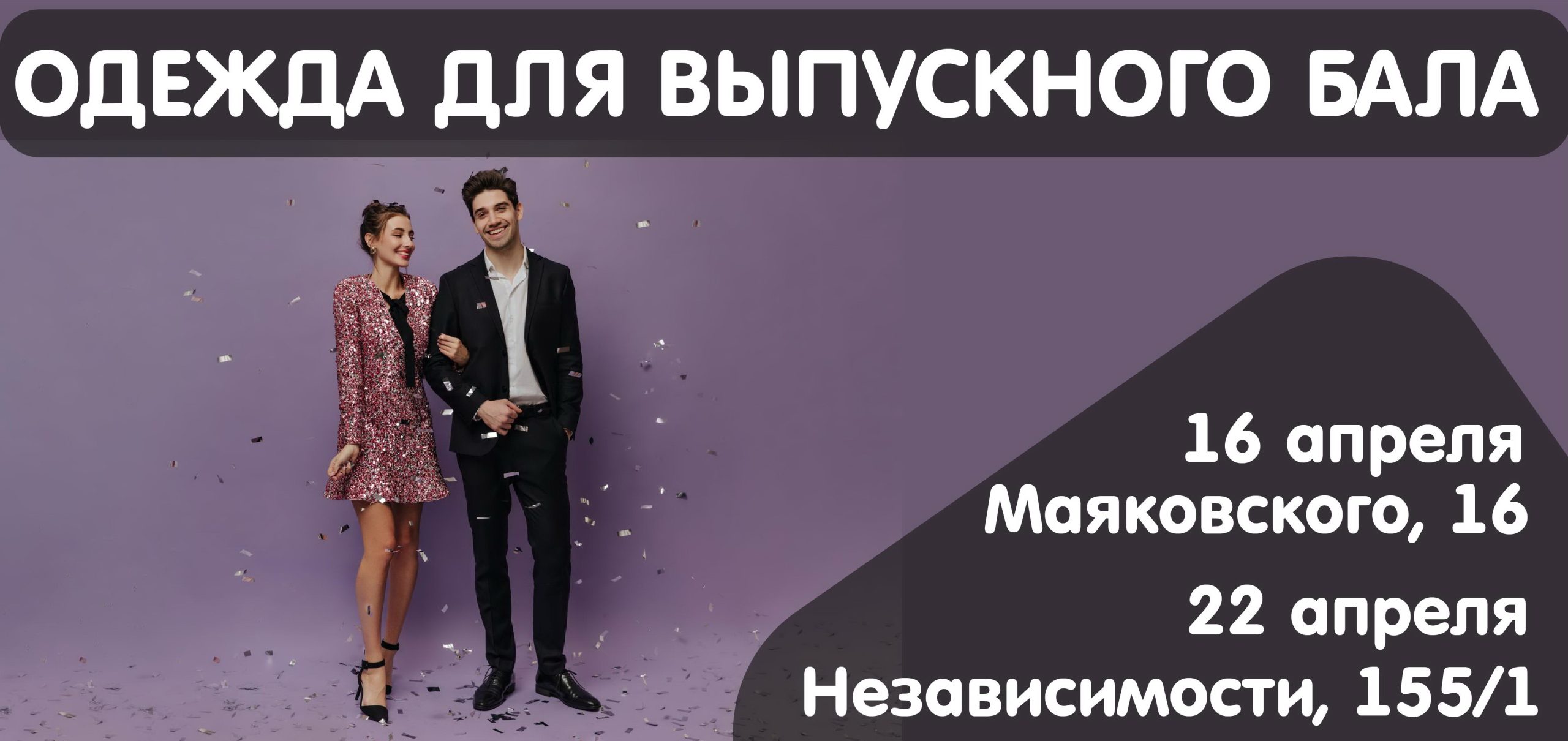 Уважаемые покупатели! Поступление ОДЕЖДЫ ДЛЯ ВЫПУСКНОГО БАЛА! 16 апреля — Маяковского, 16 22 апреля — Независимости, 155/1 Приглашаем за покупками! Навигация по записямПредыдущаяПредыдущая запись:ОДЕЖДА ДЛЯ АКТИВНОГО ОТДЫХА И ТУРИЗМА!17 апреля — Руссиянова, 7СледующаяСледующая запись:Поступление одежды для ВЕРХОВОЙ ЕЗДЫ!14 апреля — Бурдейного, 8